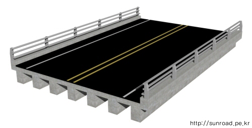 30m 정도까지의 지간에 대하서 주로 적용되며 교량 단면은 아래그림과 같습니다.