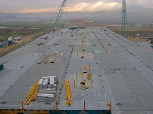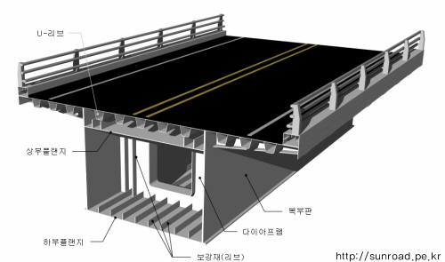 또한 상판의 U-리브 등을 현장에서 용접을 하여야 하므로 시공이 조금 까다롭습니다.(현장에서 용접을 하게 되면 공장용접보다 용접의 질이 떨어질 우려가 있으며 용접검사등을 수행해야 합니다.)
