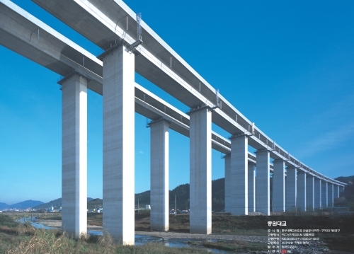 PSC박스거더교는 콘크리트 박스형태의 거더에 프리스트레스를 가한 교량으로 50m에서 100m가 넘는 교량까지 다양하게 적용될수 있습니다.