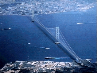 현수교는 여러가지 교량형식중 가장 긴 지간장에 적용되는 형식입니다. 세계 최장경간 교량은 일본의 아카시대교로 중앙경간 1991m의 타정식 현수교입니다.