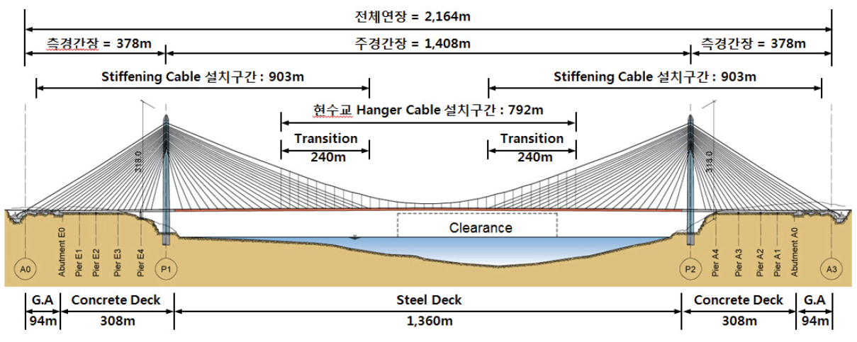 교량 교폭은 57m로 왕복 8차선+철도로 구성되어있으며, 측경간은 PSC박스거더교 (FSM, 아래사진), 주경간은 강바닥판으로 계획되었습니다.
