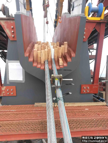 아래는 PPWS 케이블 시공 전경입니다. PPWS 케이블은 직경 5.4mm 127가닥으로 구성되었고 강도는 1,860MPa입니다.