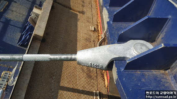 주탑에 Catwalk Rope를 Socketing한후 앵커리지 정착부에 Socketing 하여 측경간 Catwalk Rope가설을 완료합니다.