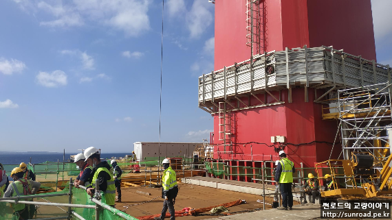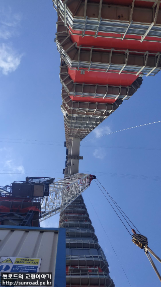 모든 준비가 끝나고 탑정 벤트위에 올라가서 Rope 날리는 장면을 동영상으로 찍으려 했지만 바람이 점점 거세게 부는 바람에 대기만 하다 결국 로프 가설 작업이 중지 되었습니다 -.-;;. 아시아 주탑에서 유럽까지 Rope를 날리는데만 4~5시간정도 걸리고 Socketing 하는 시간까지 하면 어두워지기 전까지 작업이 불가능 하기 때문입니다.