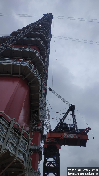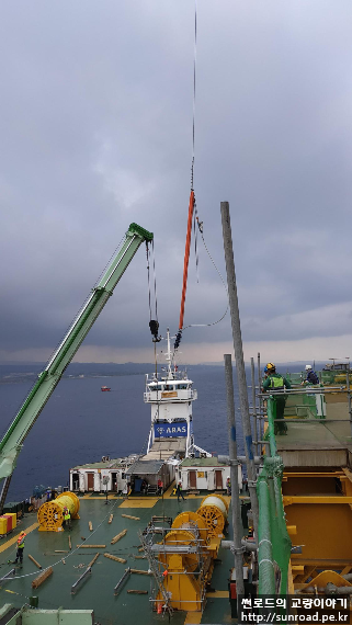Catwalk Rope 시공 전경 몇장 더 올려봅니다. 현재 Leg당 12개의 catwalk rope 중 6~8개를 설치 완료하였습니다.