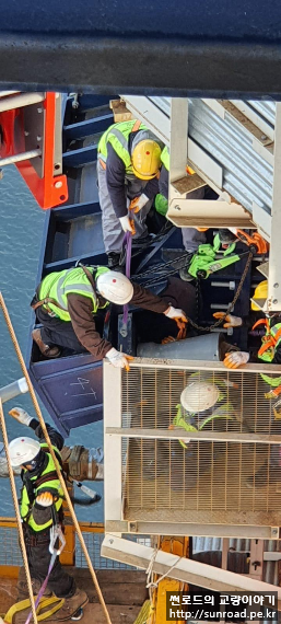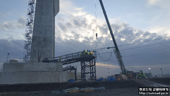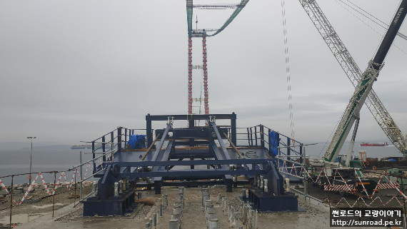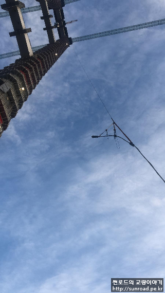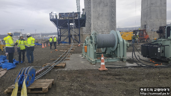 지난 1월 1일 포스팅 이후 두달동안 Catwalk floor, Pullback strand, Hauling rope, Galose frame 등의 설치를 완료하고 현재 메인케이블을 가설하고 있습니다.
