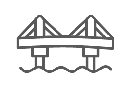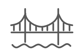 현수교란 주탑(Tower) 및 앵커리지(Anchorage)로 주케이블(Main Cable)을 지지하고 이 케이블에 행어(Hanger)로 보강형을 매달아 지지하는 교량형식입니다. 사장교와는 달리 보강형에 압축력이 거의 발생하지 않아 사장교보다 더욱 긴 경간에 적용이 가능하여 1,000m 이상의 초장대교는 대부분 현수교가 적용됩니다. 교량 상판이 현수 케이블에 매달린 구조로 다른 교량에 비해 유연하여 바람에 의한 영향을 면밀히 검토하여야 합니다. 보강형의 형식은 트러스와 박스거더 형태가 주로 사용되며, 주케이블의 고정방법에 따라 타정식 (earth-anchored)과 자정식(self-anchored) 현수교로, 경간구성에 따라 단경간 현수교, 3경간 2힌지 현수교, 3경간 연속 현수교, 다경간 현수교 등으로 구분합니다.. 세계 최장 경간 교량은 일본의 Akashi Kaikyo Bridge(1991m)이며 2022년 완공 예정인 터키의 1915 차낙칼레 교량의 중앙경간은 이보다 긴 2023m 입니다.