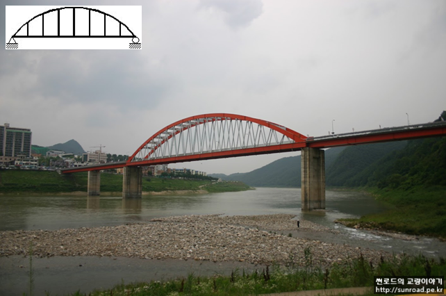 - 중로교 (中路橋, Half-through Bridge) : 교면이 교량상하의 중간에 있는 교량
