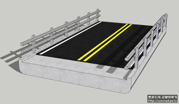 슬래브교는 단순교인 경우 5~15m, 연속교는 10~30m 정도 지간에 주로 적용하며, 슬래브의 두께는 보통 지간장의 1/16~1/20 정도가 적당한 것으로 알려져 있습니다. 슬래브교는 거더교에 비해 상부구조의 높이가 낮으므로 다리 밑 공간 확보가 피요한 곳에 유리합니다.