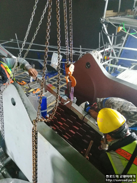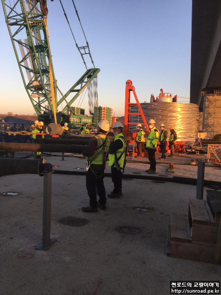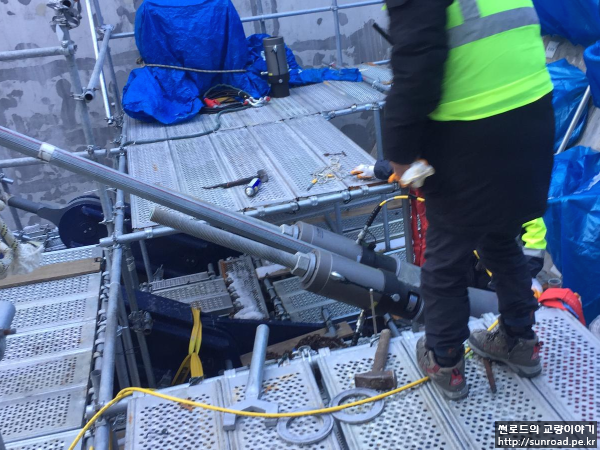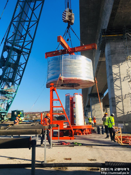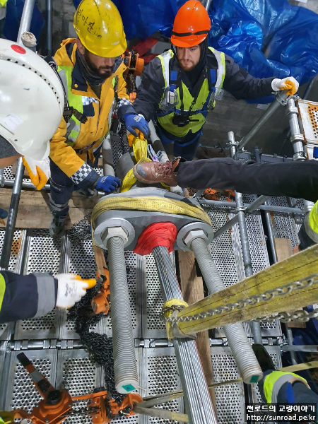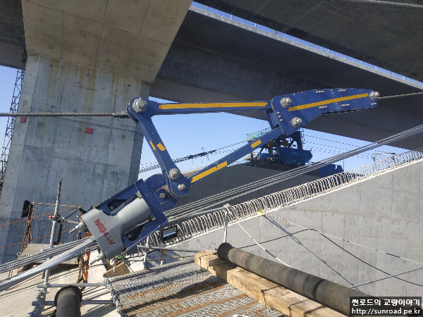 유럽 측까지 케이블 인출이 완료되면 PPWS 소켓을 앵커리지 Splay Chamber로 이동시켜 Cross Head Slab에 정착할 준비를 합니다.