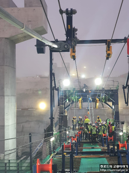 Hauling System 설치 완료 후 드디어 메인케이블 가설을 시작하였습니다.
