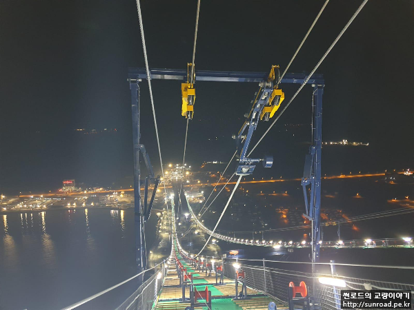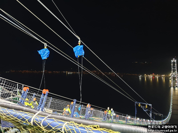 설치를 완료한후 Sag측량을 하여 케이블의 최종 선형을 조정합니다. Sag 측량 결과에 온도 등을 고려하여 조정 값을 결정하게 됩니다. Sag 조정은 아시아 주탑을 고정으로 아시아/유럽 측경간은 앵커리지 정착구에서 유압잭으로 조정하고, 중앙경간 Sag조정은 유럽주탑에서 유압잭을 이용하여 조정합니다.