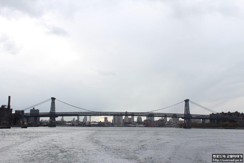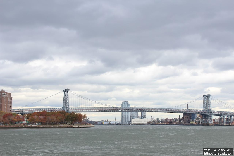 윌리엄스버그 브릿지는 (Williamsburg Bridge)는 뉴욕 이스트 강에 위에 위치하여 맨해튼 동부와 브루클린 지역을 잇는 현수교로 1903년에 완공되었습니다. 교량 연장은7,308 feet (2,227m), 폭 118 feet (36 m)이며 중앙경간은 1,600 feet (490m)의 단경간 현수교로 1924년까지 세계 최장 경간 교량이었습니다.