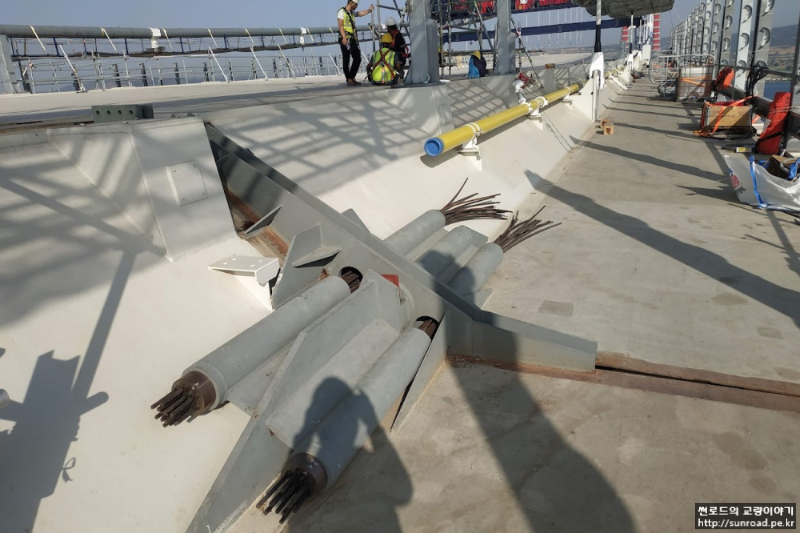 7얼 31일 현재 중앙경간은 4기의 L/G 가설이 완료되었고 이를 이용하여 1개의 Single Block Deck와(24m) 5개의 Mega Block Deck(48m) 가설이 완료되었으며, 측경간은 아시아/유럽 각 1개씩의 L/G가설이 완료되었으며, 4,500 ton Floating Crane(F/C)을 이용하여 아시아/유럽 각 3개/2개의 Deck 가설이 완료되었습니다.