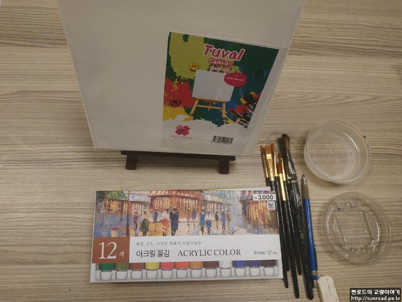 인터넷에서 20cmx20cm짜리 캔버스도 몇 개 샀다. 그림을 그려본 건 고등학교 미술시간에 그려본 게 마지막이었고 캔버스는 미술 전공자들이 사용하는 거라서 꽤 비쌀 줄 알았는데 싼 것도 많이 있었다. 내가 산건 하나에 우리 돈 1000원 정도...