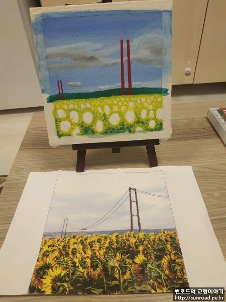 "어랏~ 그럴싸 한데?" 생각보다 괜찮게 그려진 것 같아 가족들에게 보여주니 나에게 두 번째 그림을 그릴 수 있는 자신감(?)을 심어 주었다. 역시 차낙칼레 교량을 계속 그려보았다.