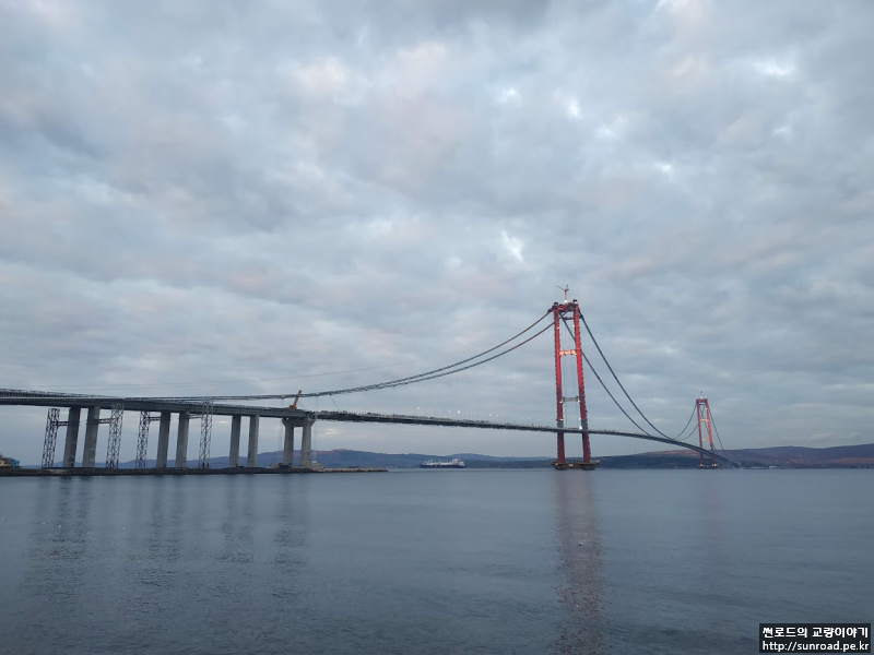 Canakkale Bridge 차낙칼레 교량 Deck 폐합 완료 (2021. 12. 21) by 썬로드 2021. 12. 22. 2021년 12월 21일 드디어 마지막 세그먼트 가설이 완료되어 총 연장 3.563km의 Deck가 폐합되었습니다. Key Segment 인양전경 (아시아) Key Segment 인양완료 및 측경간 측 연결중 중앙경간 측 연결 완료 / 주탑 working platform 전경 가설완료 전경 (2021. 12. 22) 공유하기 게시글 관리 썬로드의 교량이야기 저작자표시 비영리 변경금지 (새창열림) 관련글 차낙칼레 교량 개통식 연기 차낙칼레 교량 Deck 시공 6 (Key Segment 가설-2) 차낙칼레 교량 Key Segment 가설 (2021. 12. 17) 차낙칼레 교량 Deck 시공 5 (Key Segment 가설-1) 댓글