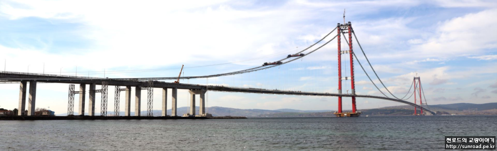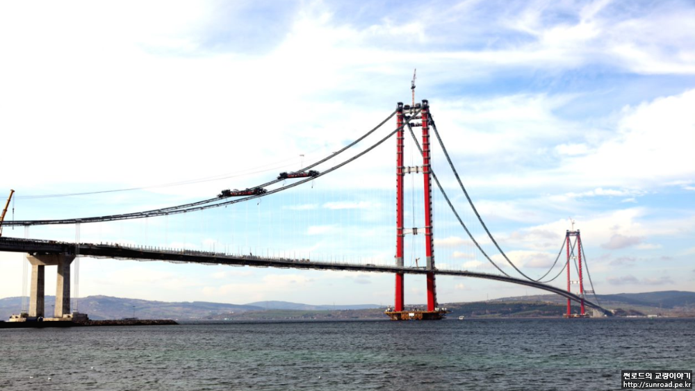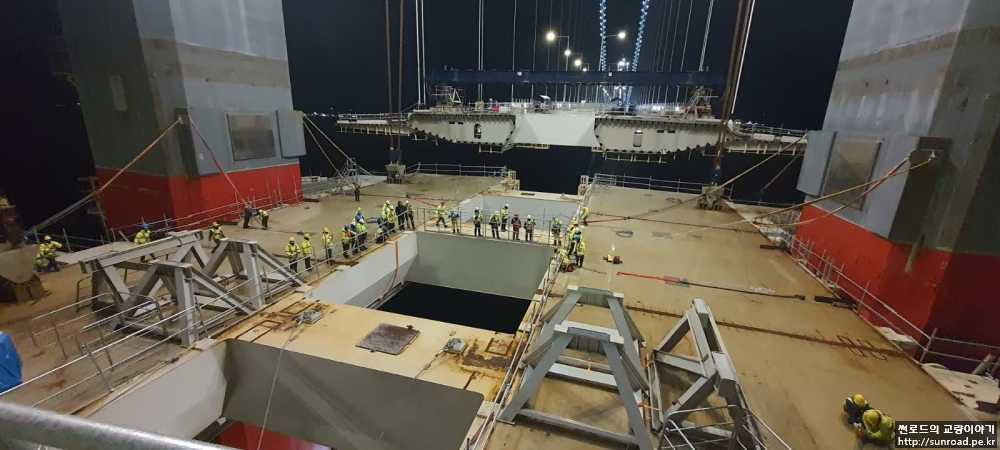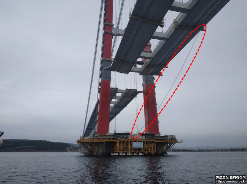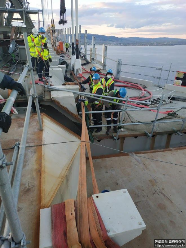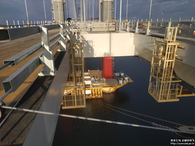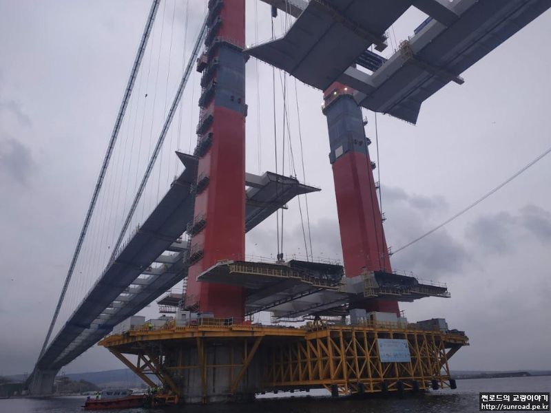 2021년 12월 21일 마지막으로 Asia측 Key segment가 가설되어 마침내 3.563km의 현수교 데크의 폐합이 완료되었습니다. 2022년 1월 현재 Keysegmet 용접 완료 후 신축이음(Expansion Joint), 방호벽/ 방풍벽, 전기시설 및 교면 포장 등의 부대공을 실시하고 있으며, Deck 가설용 Lifting Gantry(L/G)의 해체가 진행되고 있습니다.
