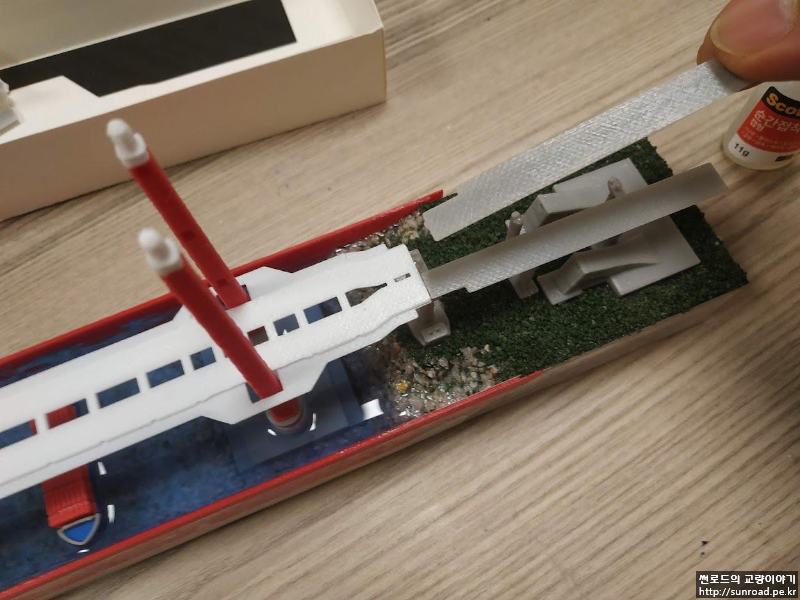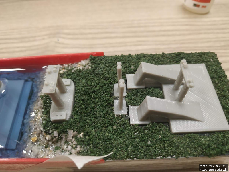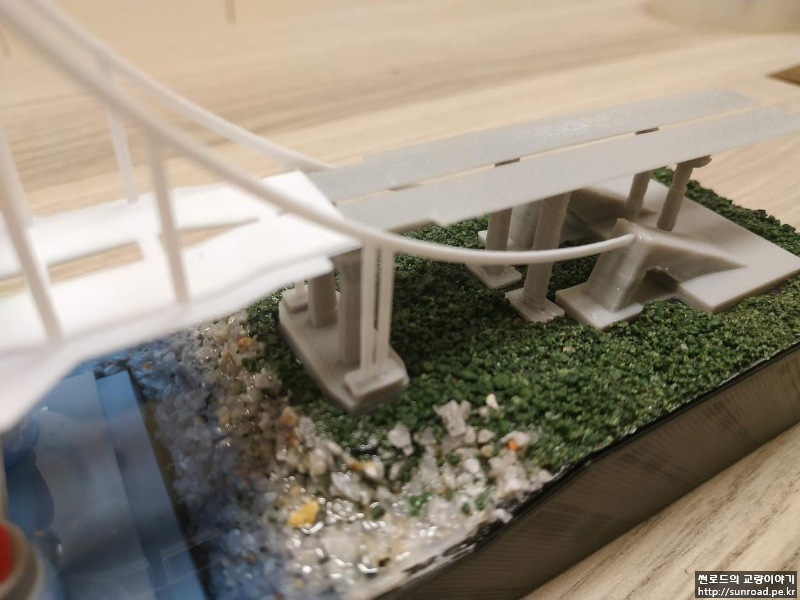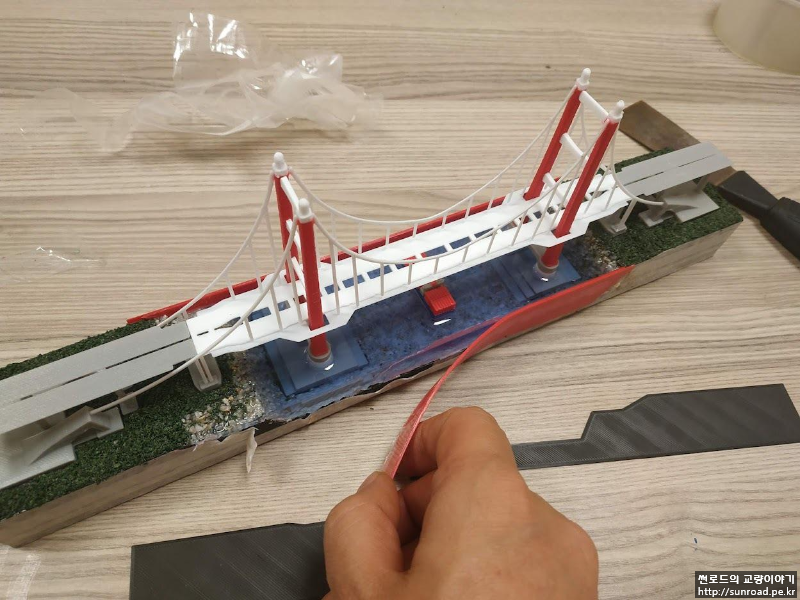 처음에는 최대한 단순하게 만들 생각이었는데 자꾸 디테일이 추가되다 보니 디오라마 비슷하게 되어 버린 것 같습니다. 교량 자체 보다는 지형을 만드는데 시간과 노력이 더 많이 들어가네요.. 게다가 퇴근시간 이후에만 작업을 하다 보니 모형 한 개를 만드는데 1주일이 꼬박 걸리는데 주변에서 자기도 만들어 달라고 하여 좀 난감하기도 합니다. 솔직히 이제는 그만 만들고 싶거든요.. 아직 제 것도 안 만들었고요..