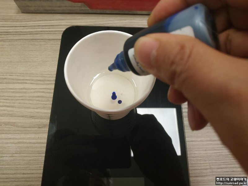 완성 후 물을 표현하기 위해 레진과 파란색 염료를 구입하여 부어 보았습니다. 처음 레진 작업 시 앞, 뒤면을 막는 벽의 Sealing이 부실하여 레진이 다 새고 난리도 아니었지요...