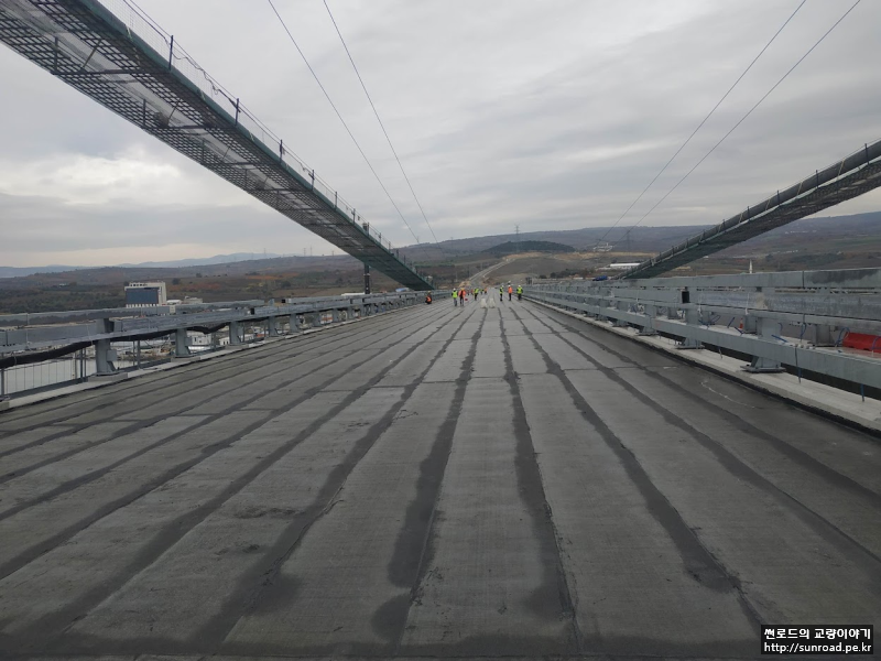 현수교 구간의 포장 시공은 아래와 같은 순서로 진행되었습니다.