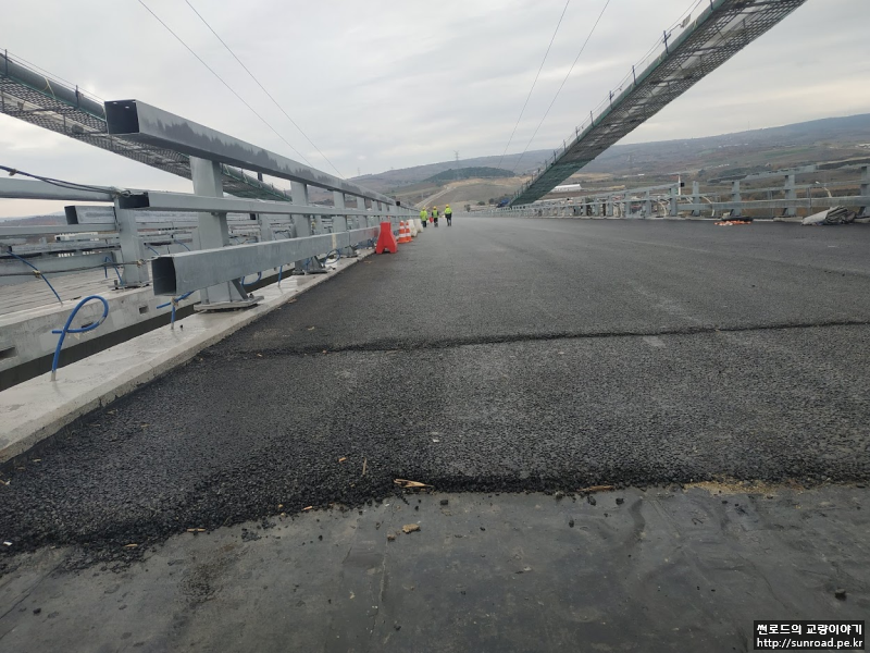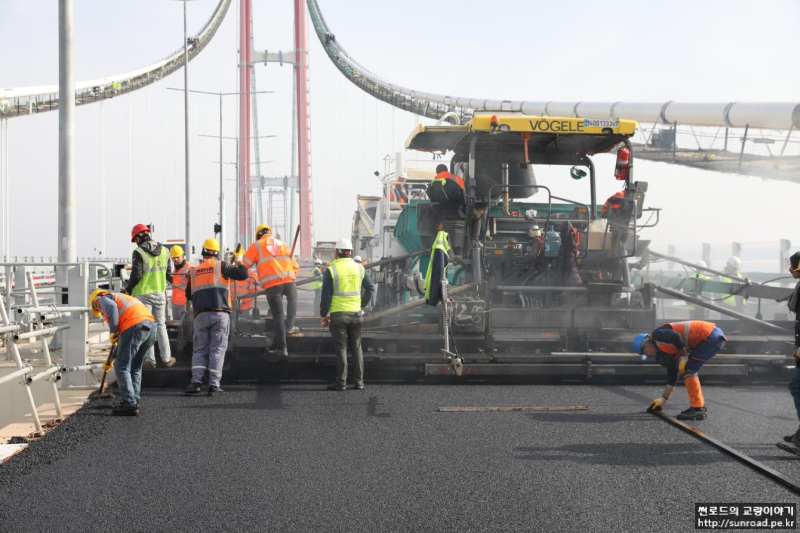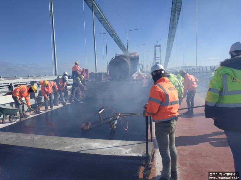 현수교 구간의 포장 시공은 아래와 같은 순서로 진행되었습니다.