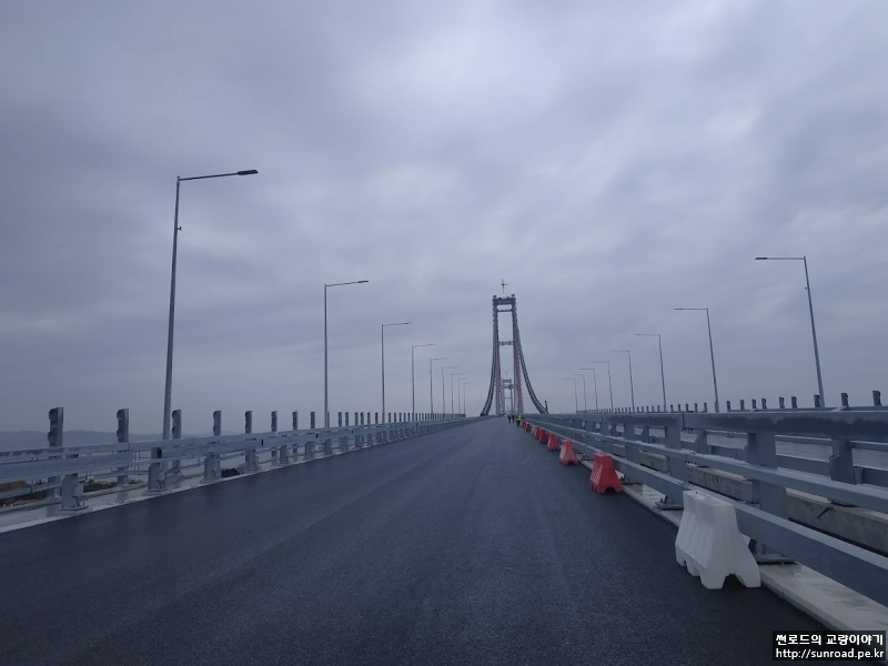 차낙칼레 교량이 포장은 방수층(methylmethacrylate membrane) 2mm / 택코트 200µm / 중간층 (MA, Mastic Asphalt) 25mm / 표층 28mm (Stone Mastic Asphalt, SMA) 으로 구성되며 총 55mm 입니다.