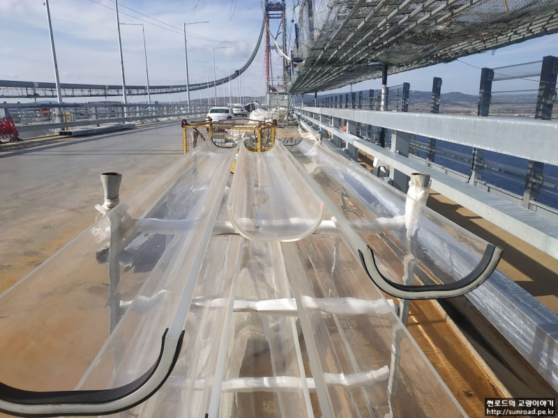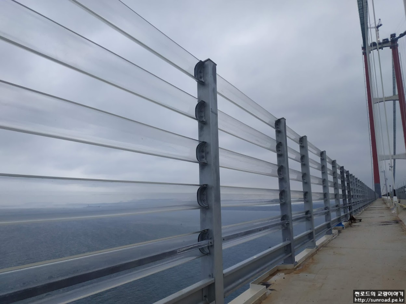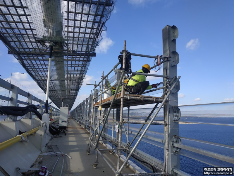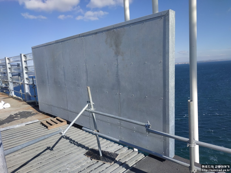 방풍벽 Post는 Deck 반입후 야적장에서 설치되었으며, Deck 가설 후 유선형의 투명한 PMMA (Polymethyl Methacrylate) Panel을 설치하였습니다.
