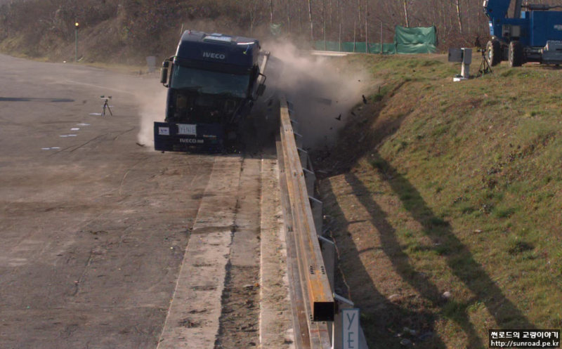방호벽은 기존 제품이 아닌 새롭게 설계/제작되었으므로 전산 시뮬레이션과 실차 충돌 테스트를 통하여 성능을 확인하였습니다.