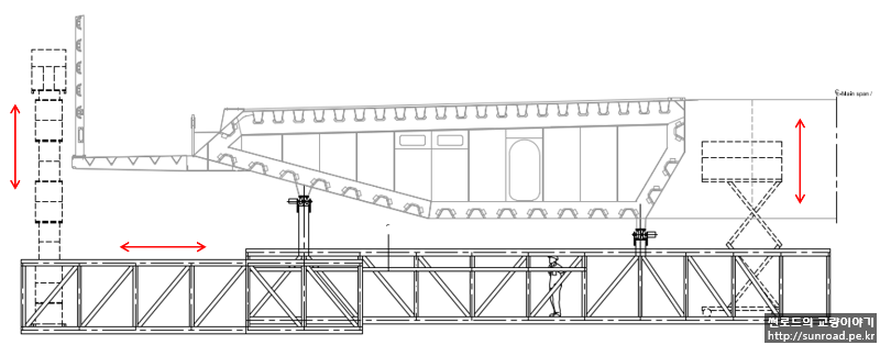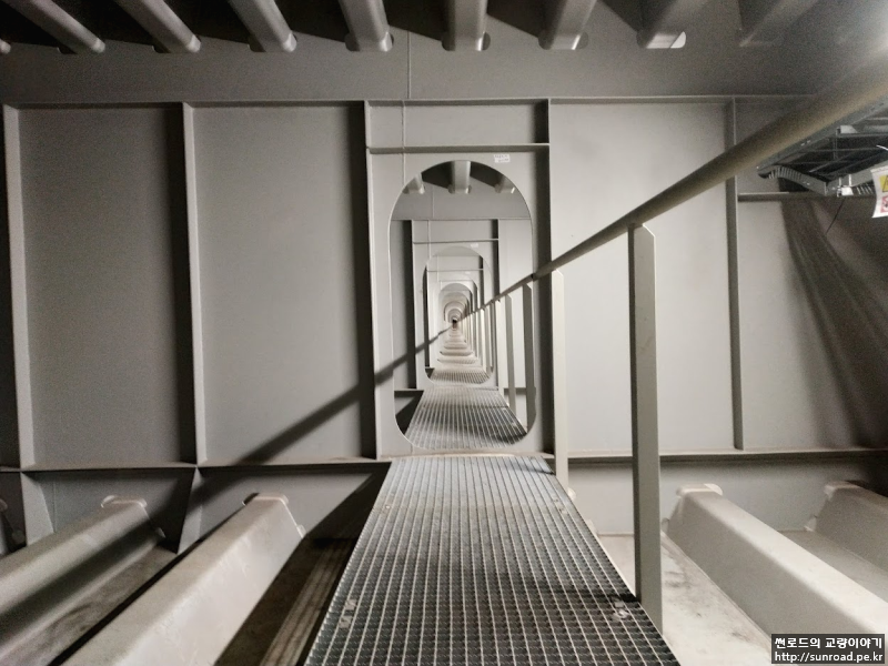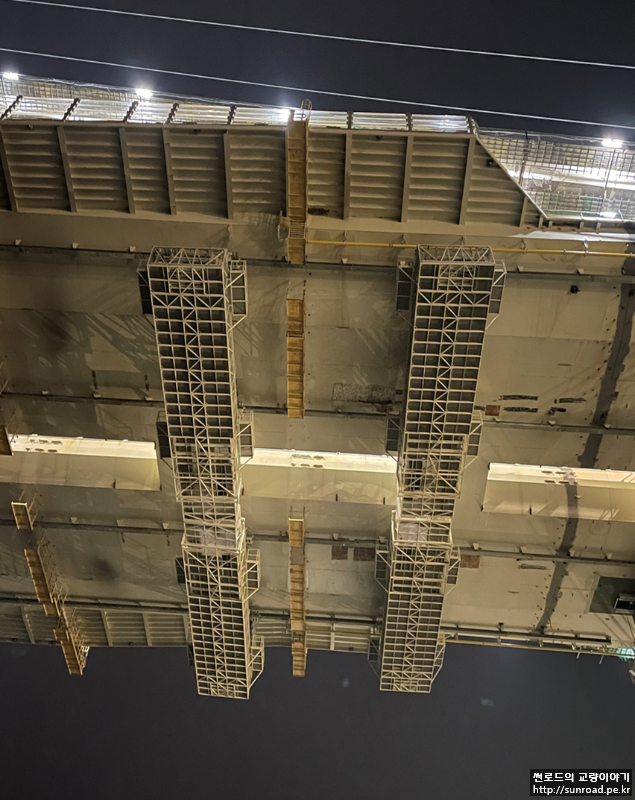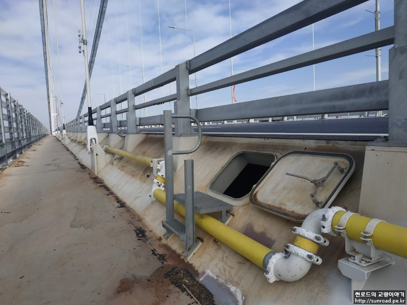 데크 내부에 진입할 수 있는 해치는 144m 마다 설치되어 있으며, 외부에 발판 및 난간이 설치되어 있습니다. 데크 내부 점검통로는 종방향 점검통로 및 각 가로보마다 횡방향으로 통로가 설치되어 있습니다.