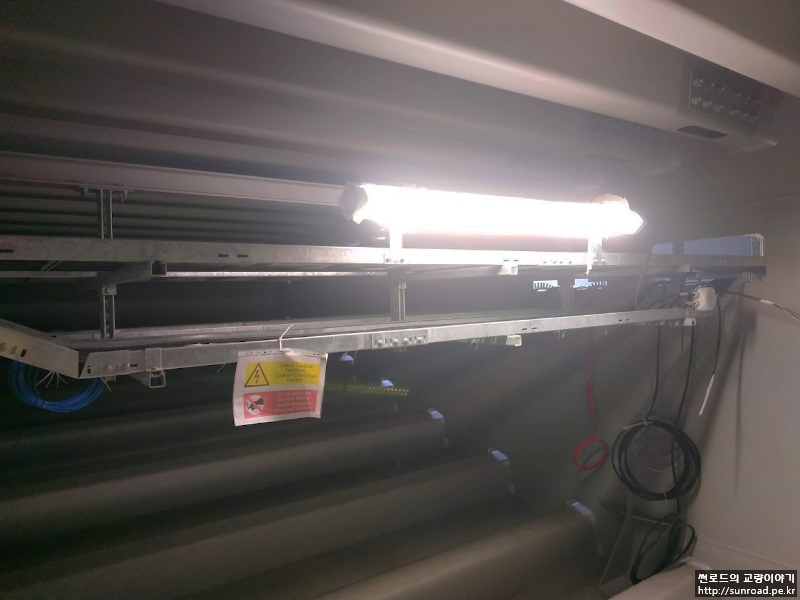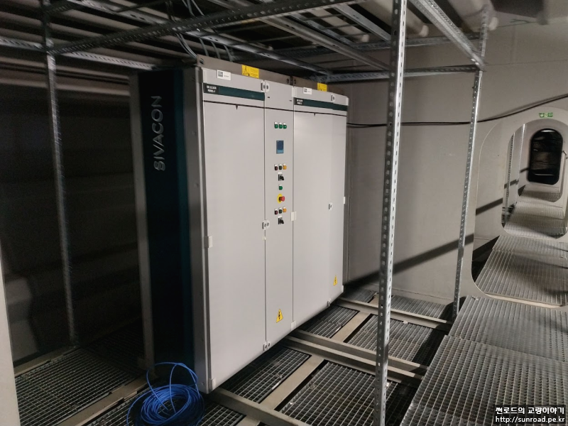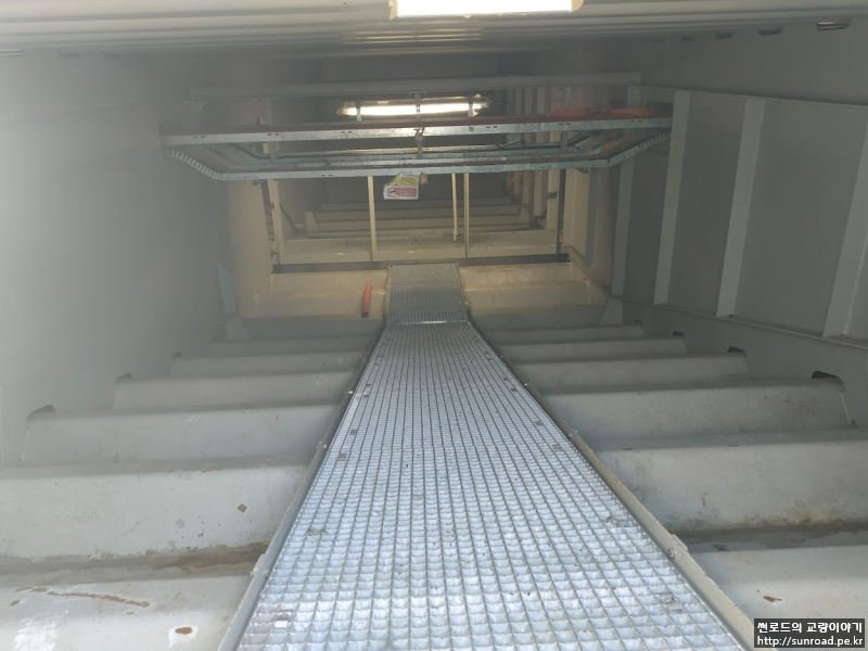 데크 내부에는 전선을 지지하는 Cable Rack과 분전함등 전기장치 뿐만 아니라 Dehumidification Plant, Buffer 및 End Stop 용 유압장치가 설치되어 있습니다.