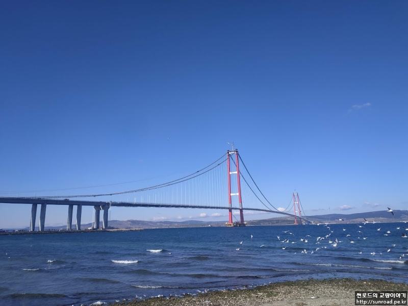 현장에 처음 와서 아무것도 없는 바다를 바라보며 머리 속으로만 그려보았던 차낙칼레 교량이 이제 그 모습을 드러내어 개통을 앞두고 있습니다.
