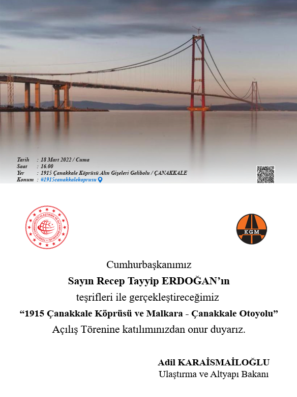 개통식은 3월 18일 오후 4시 유럽 측 톨게이트에서 시작하며 개통식 후 교량을 걷는 행사가 있다고 들었습니다. 전국 각지에서 에르도안 대통령, 정부관계자 및 여당 지지자 10,000명이 참석하고 한국에서도 국무총리와 국토부 차관 등이 참석한다고 하네요...