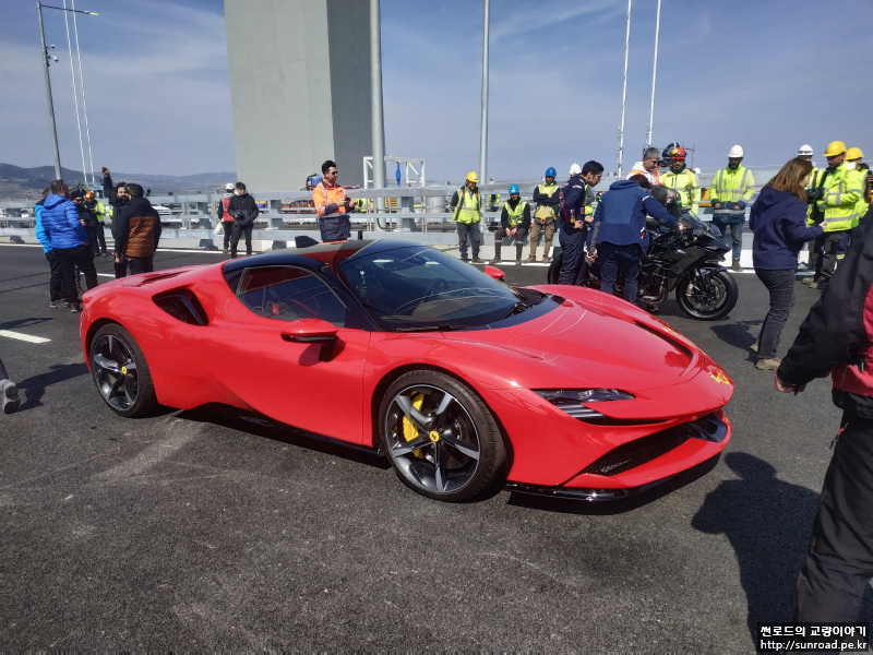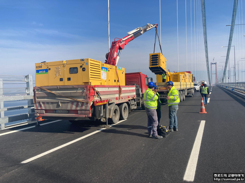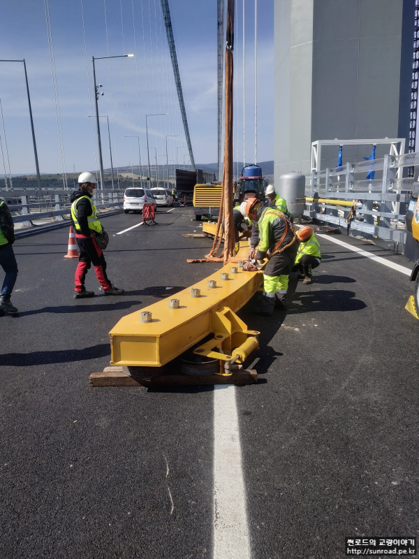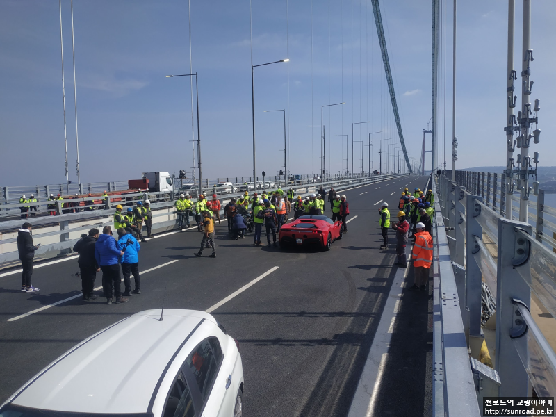 개통식 3일 전 갑자기 오토바이와 페라리 한대가 와서 교량을 시범 주행(?)을 했습니다. 5번인가 세계 모터사이클 챔피언에 오른 사람(Kenan Sofuoğlu)이라는데 전 잘 모르겠습니다. 괜히 작업에 방해만 되었다는 것만 생각나네요...^^ 유럽 측 주탑에 버퍼 보러 갔다가 우연히 보게 되었습니다. 터키애들은 페라리 앞에서 사진 찍느냐고 난리였고요...