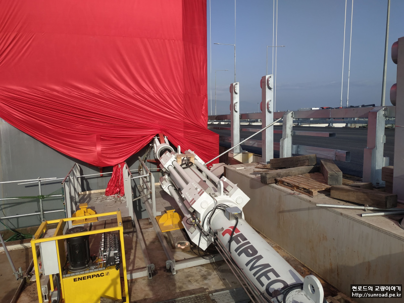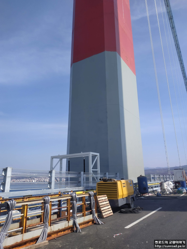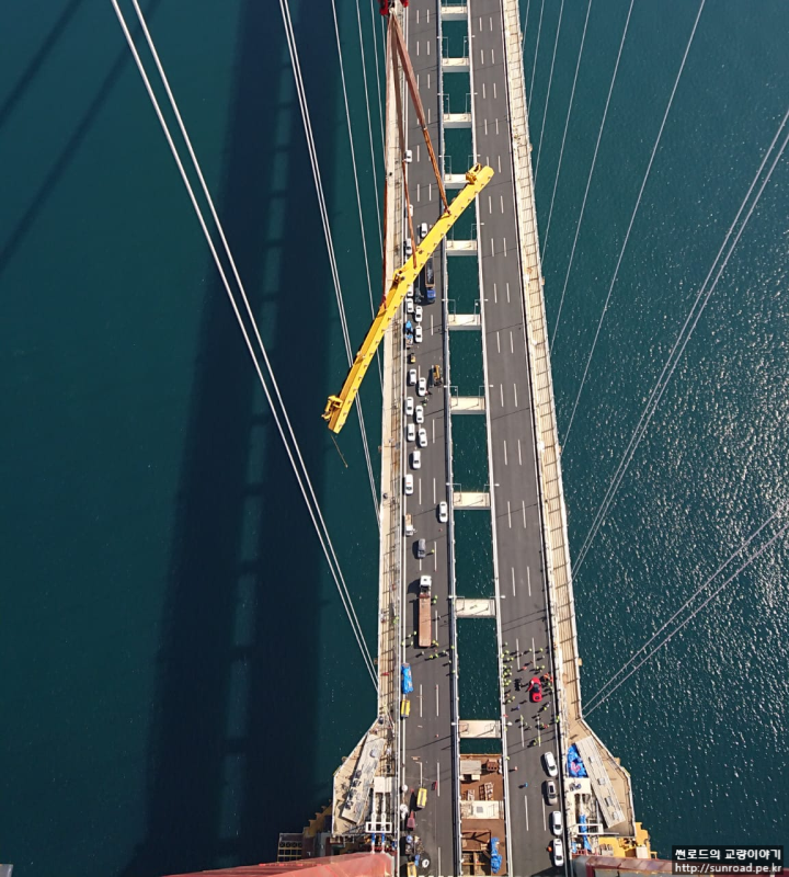 개통식이 다 끝나고 밤이 되니 위에서 언급한 조명이 가동되었습니다. 메인케이블의 조명은 Catwalk에 설치된 공사용 조명이며 아직 경관조명은 설치되지 않았습니다. 경관조명은 케이블 클램프와 데크, 그리고 타워에 설치될 예정입니다 나중에 교량 경관설계 관련한 포스트에서 자세히 이야기하겠습니다.