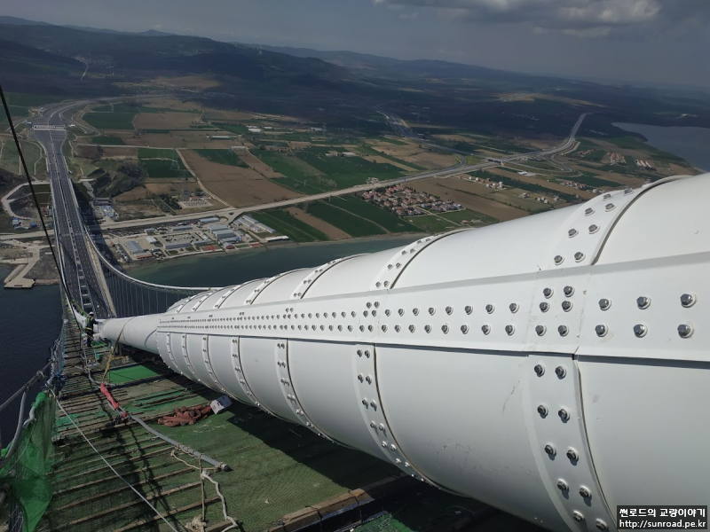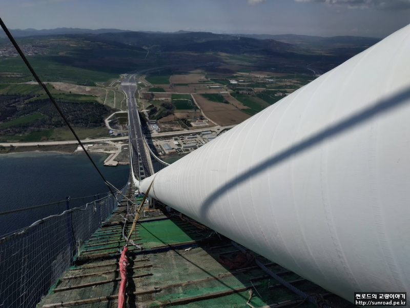 현재 메인케이블 Wire Wrapping 및 Rubber Wrapping이 완료되었으며, Shroud, Dehumidification Sleeve, Non-Slip Paint 도포 및 핸드로프 설치 등의 작업을 하고 있습니다. 케이블 부대시설은 나중에 별도의 포스트로 올리려고 합니다.