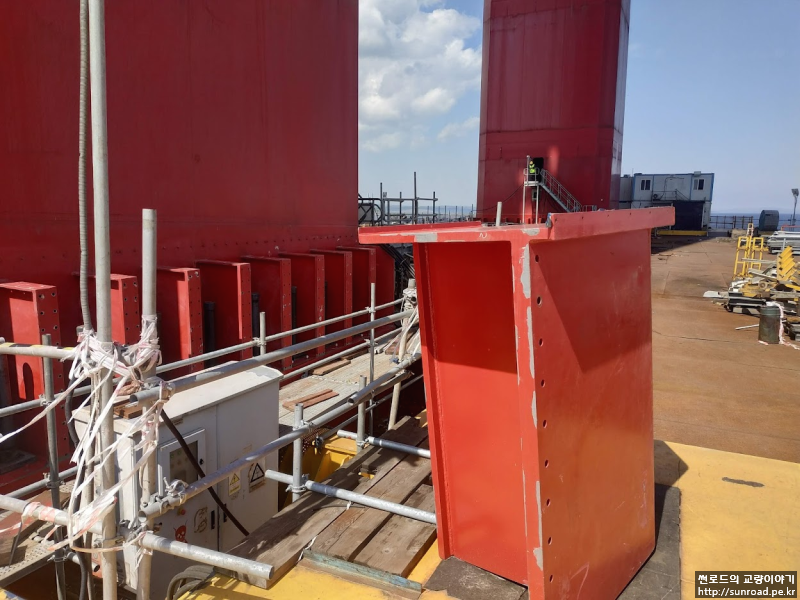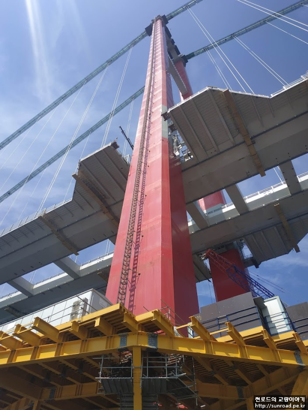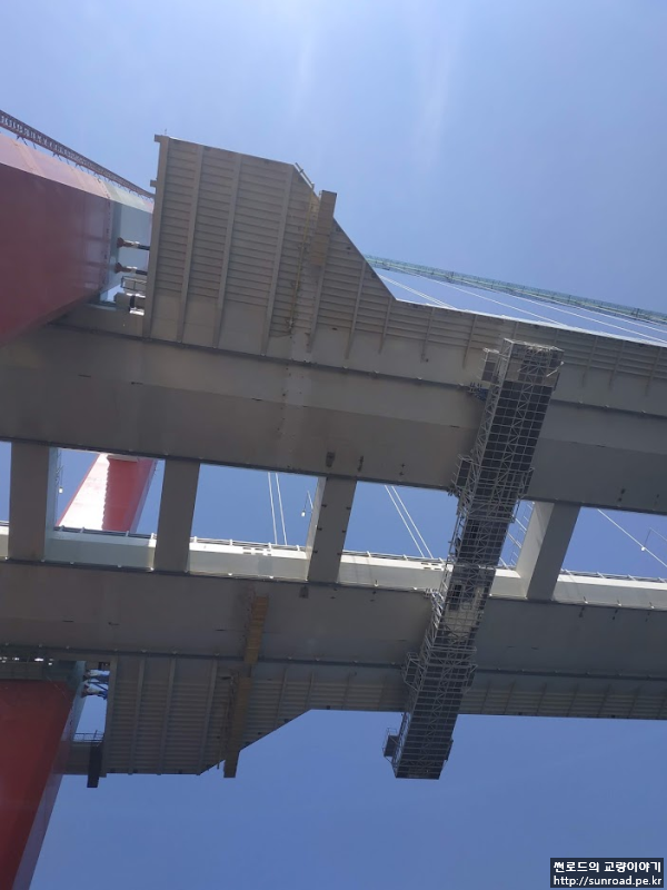 교량 개통후 현장 접근이 어려워져(한시간에 한번씩 운행하던 배가 하루에 두세번으로 줄었습니다.) 예전같이 현장에 자주 나가보지 않고 있다가 모처럼 주탑에 다녀왔습니다. 데크쪽에는 종종 다녀오곤 했는데 주탑은 개통 후 처음 다녀오게 되었습니다.