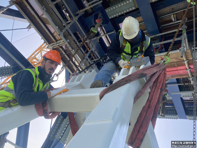개통 후에도 메인케이블 클램프 Final Bolt Tensioning, TSR(Tramway Support Rope) 해체, Sealing, Cable 부대시설(Dehumidification Sleeve, Shroud, 핸드로프 설치), 데크 Welding Platform 해체 및 Touch-up, 주탑 탑기부 Cover Plate 설치 등의 작업을 실시하고 있으며 Catwalk 해체, 탑정/스플레이 벤트 해체, 주탑 Working Platform 해체, Tower Top Encosure 설치 및 탑정크레인 해체 등의 작업이 계속 진행될 예정입니다. (대충 생각나는 것만 적어봤는데 아직도 갈 길이 머네요...)